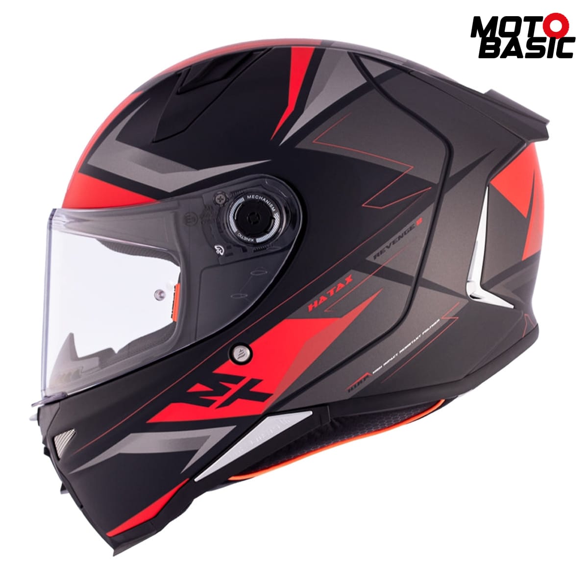 Casco MT Revenge 2 S Hatax Negro Mate/Gris/Rojo