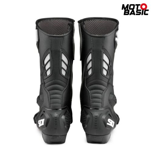 - Cierre con velcro y cremallera a la que se ha añadido un panel elástico para ayudar a que la cremallera funcione sin problemas, ya que permite un poco de movimiento a través del elástico cuando la cremallera pasa sobre la bola del tobillo.