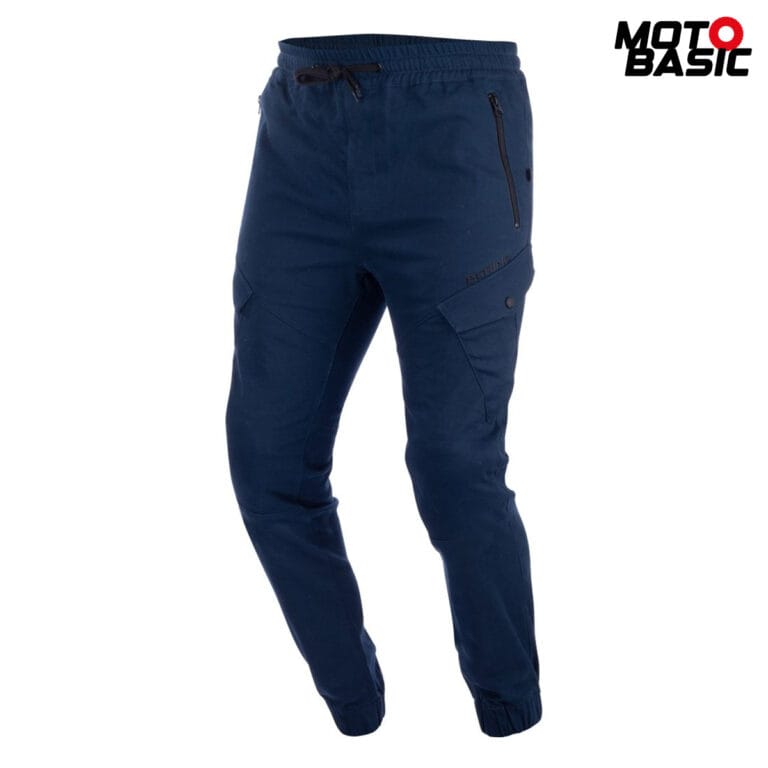 Pantalón de estilo chino muy cómodo, realizado en algodón elástico con refuerzos de Dupont Kevlar®; con protecciones en las rodillas y elásticos en la cintura y los tobillos para un ajuste más cómodo