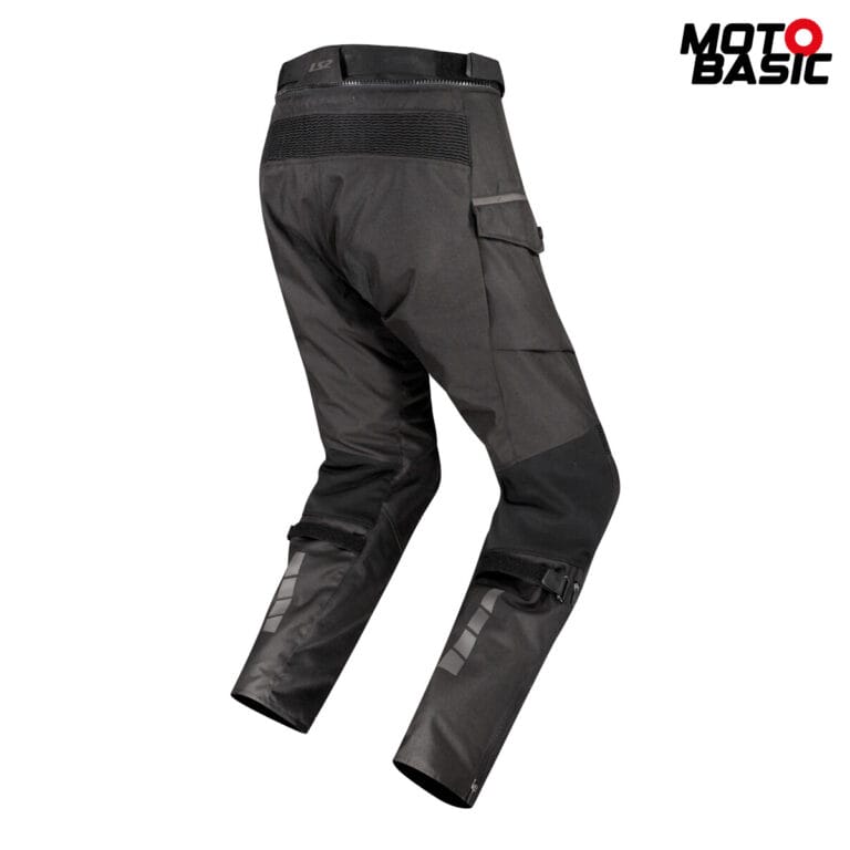 - Cremalleras de ventilación en las piernas, con botones a presión para cerrarlas; y salidas de aire trasero