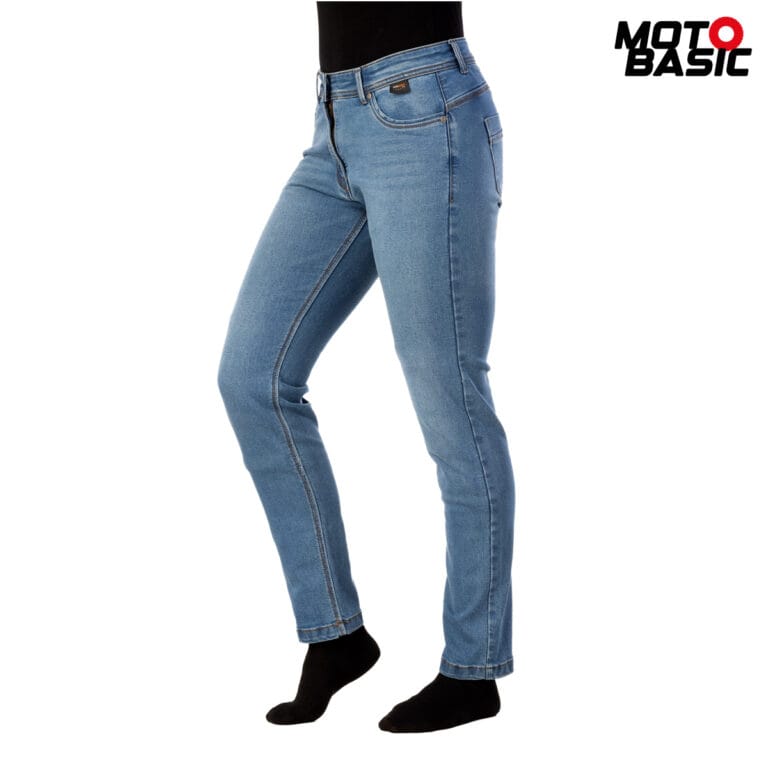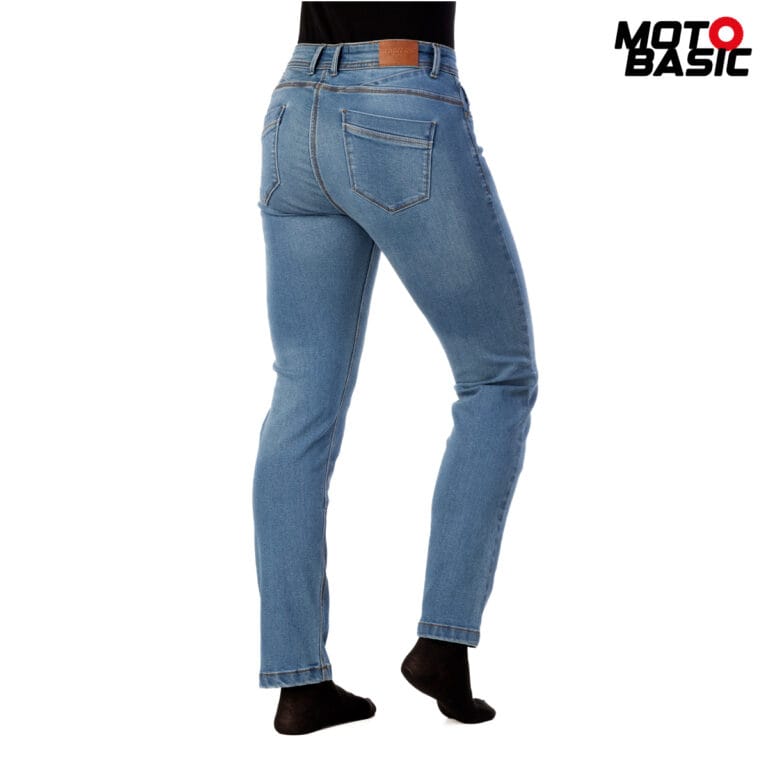 Vaquero de excelente calidad, muy elásticos y una vez puestos quedan como una segunda piel, se ajustan perfectamente a tu figura, realzándola y ofrecen una libertad de movimiento extraordinaria; este modelo es de talle alto, por lo que cuando vayas en moto la zona lumbar quedará protegida del viento